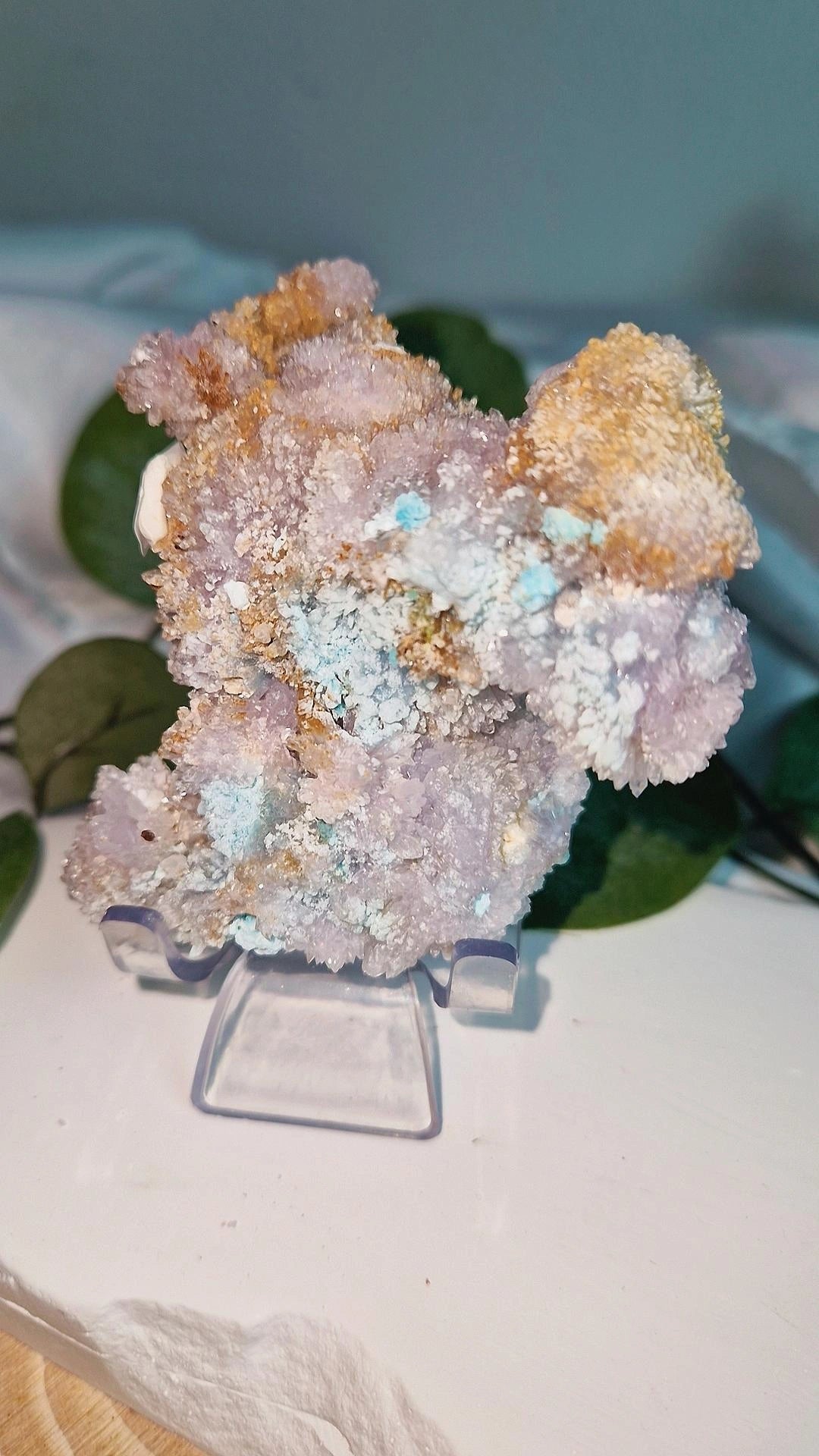 Creedit, ein seltenes Mineral, das mit anderen Mineralien wie Fluorit vorkommt und weltweit nur wenige Fundstellen hat, aber nicht als typischer wertvoller Schmuck-Edelstein gilt